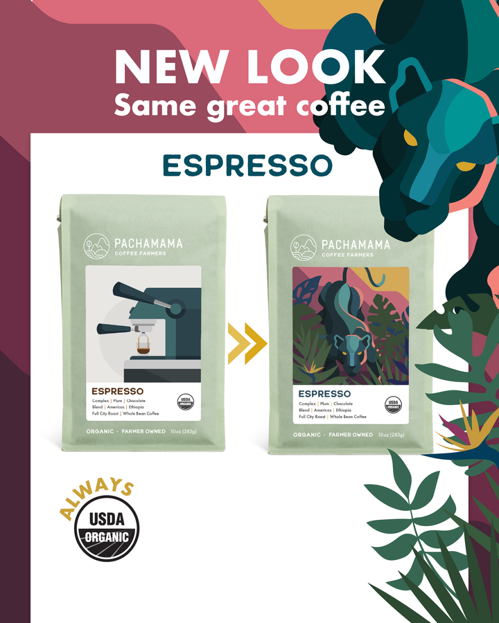 Savor a full roast espresso with notes of plum and chocolate. This organic espresso bean blend is curated from the best espresso beans found in Ethiopia, Perú, and México.